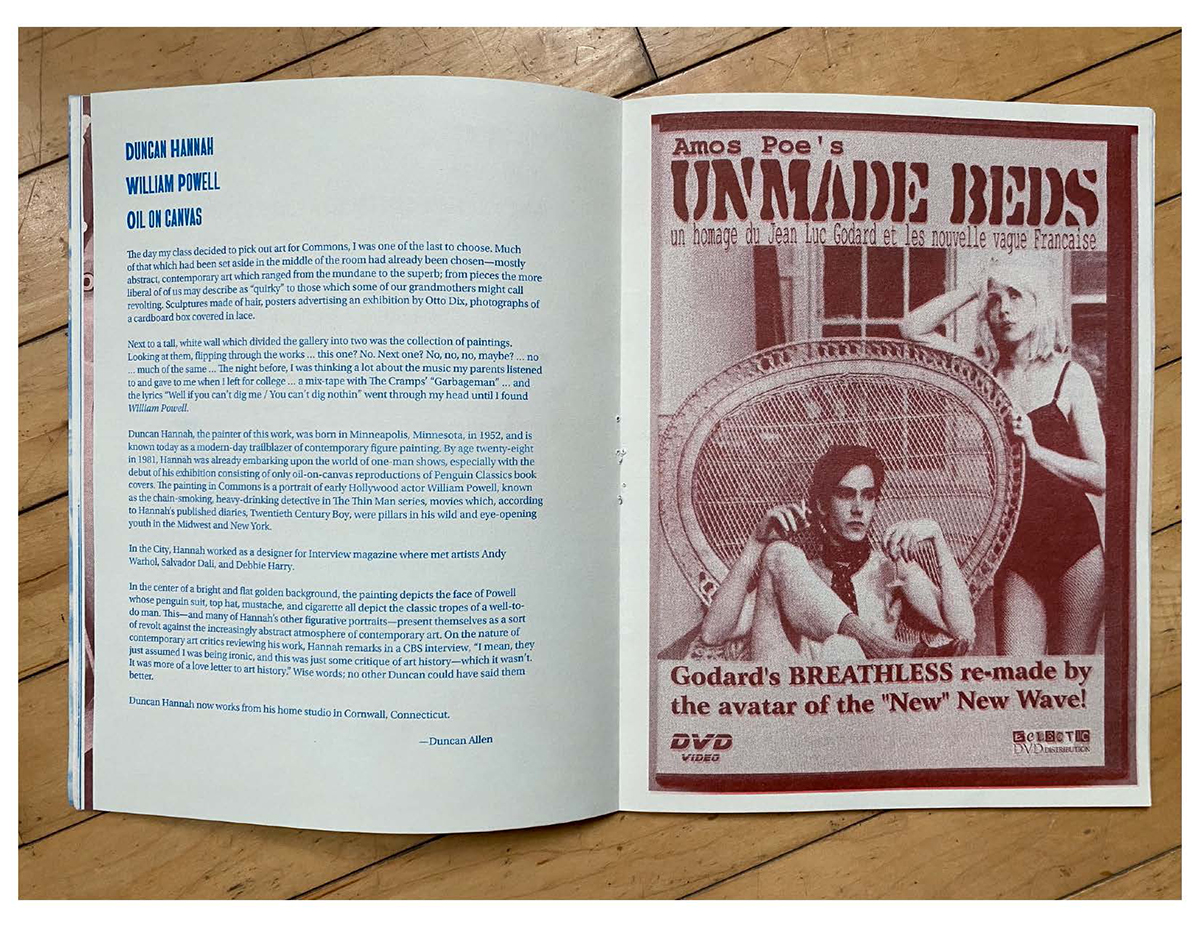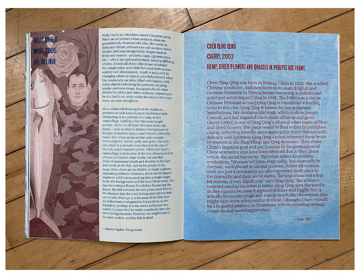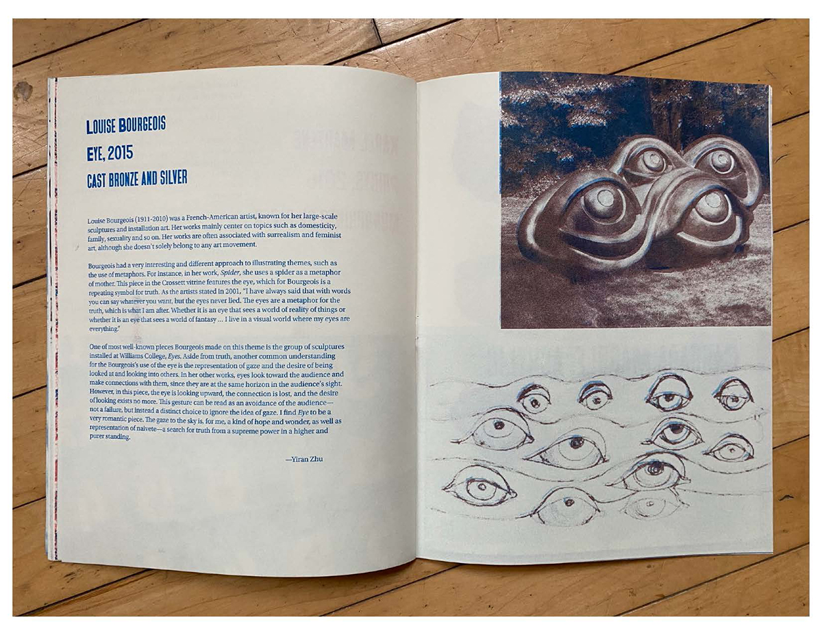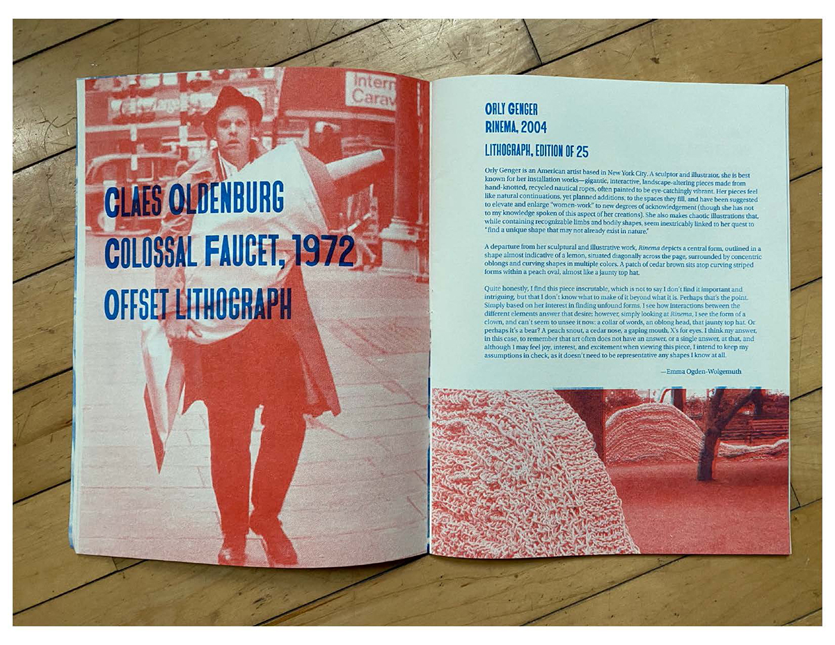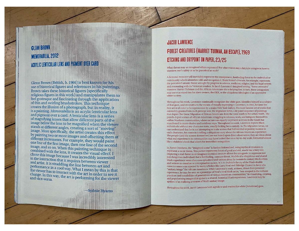 Catalog authors: Duncan Allen, Maddie Baker, Jack D’Angelo, Nia Dorsey, Nora Hany, Sydnie Hyams, Zoe Ilic, Annalise Lozier, Emma Ogden-Wolgemuth, Tighe Ridley, Ella Simon, Yiran Zhu, and Charlotte Zinsser. The class was taught by Anne Thompson, with support from Erin McKenny, who manages the Usdan Gallery art collection.
