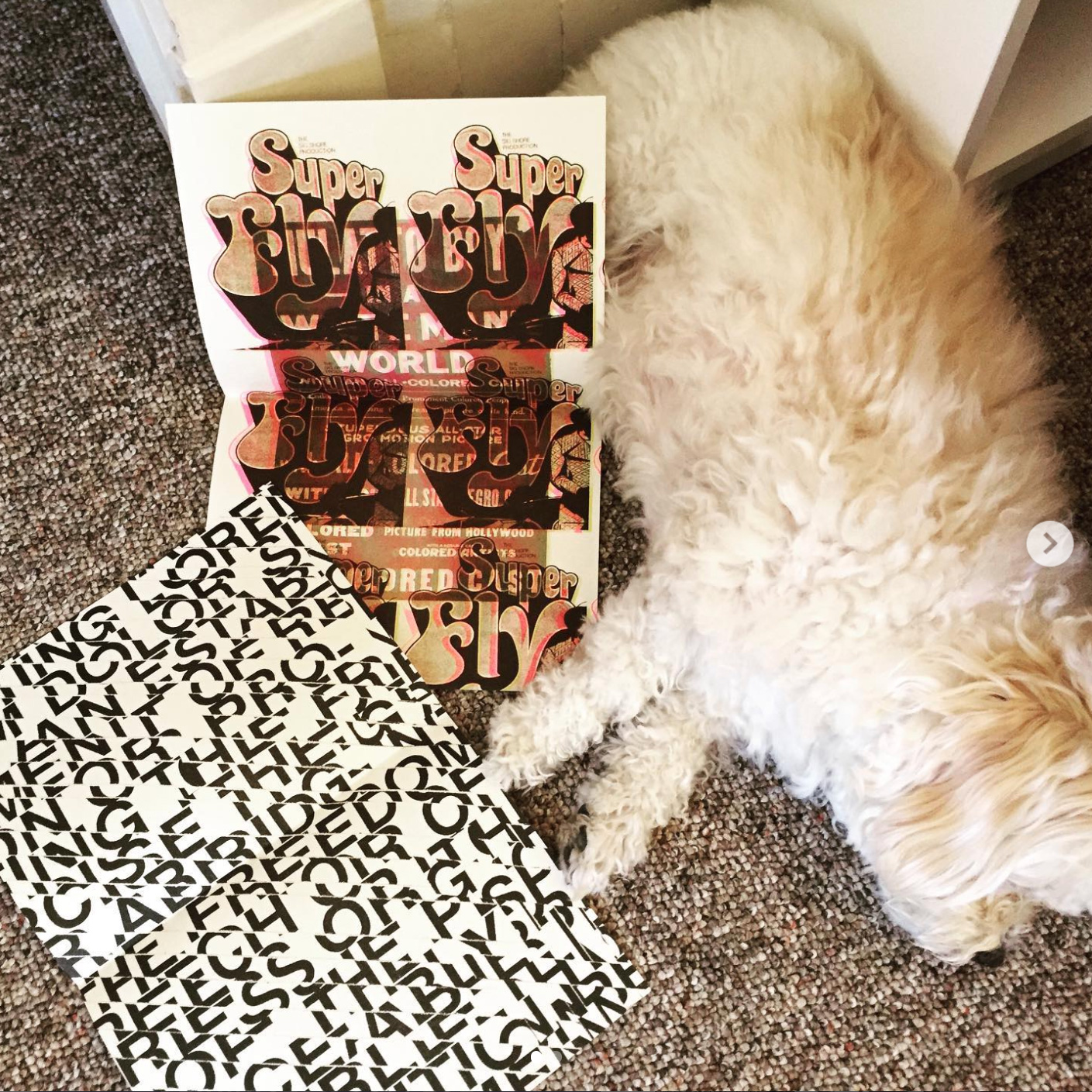 The exhibition also is designed to transcend traditional exhibition timeframes. For two months, Usdan Gallery displayed Bring It Home artworks on a large wall, and the posters were stacked on a gallery table for Bennington College community members to stop by and pick the show. Today, Bring It Home continues via its catalog—printed in the style of a newspaper tabloid and available as a PDF—which documents the exhibition while allowing it to continue to grow by redistributing the posters in a new format. Recipients can keep this catalog intact or, as they choose, make space for and display the artworks at home. We encourage people to document the exhibition as they install or encounter it and to share images via social media.