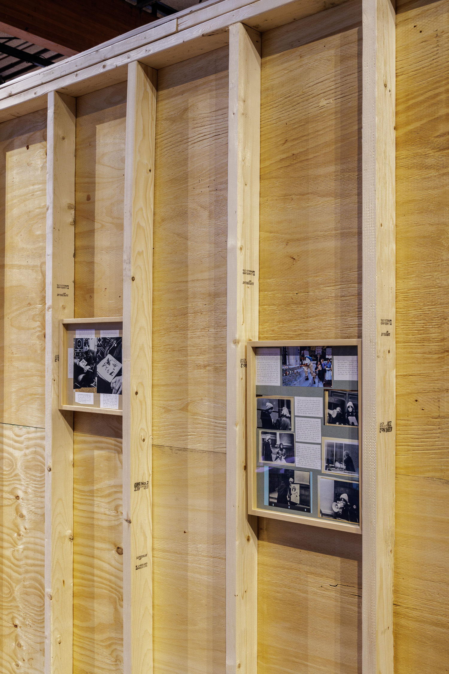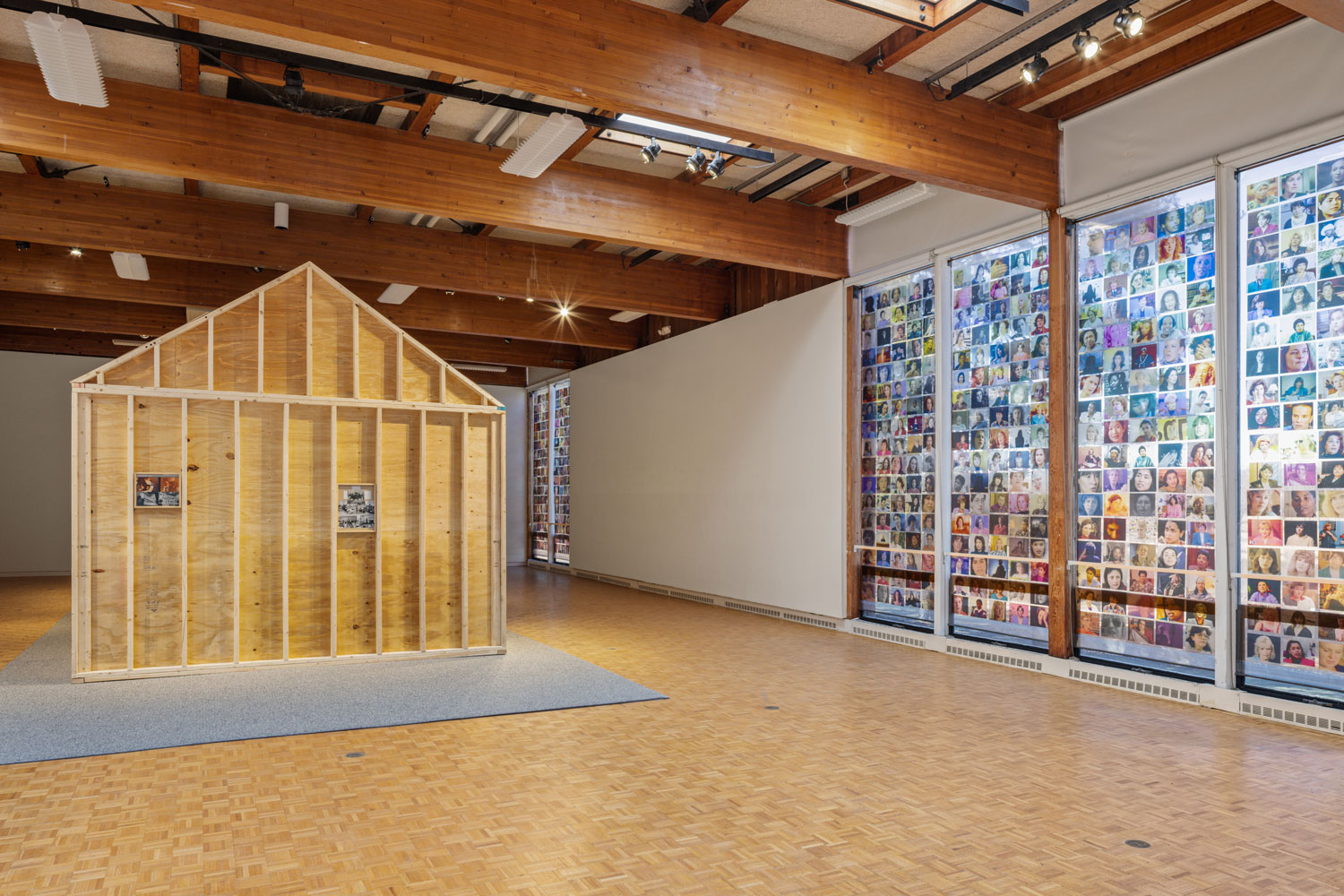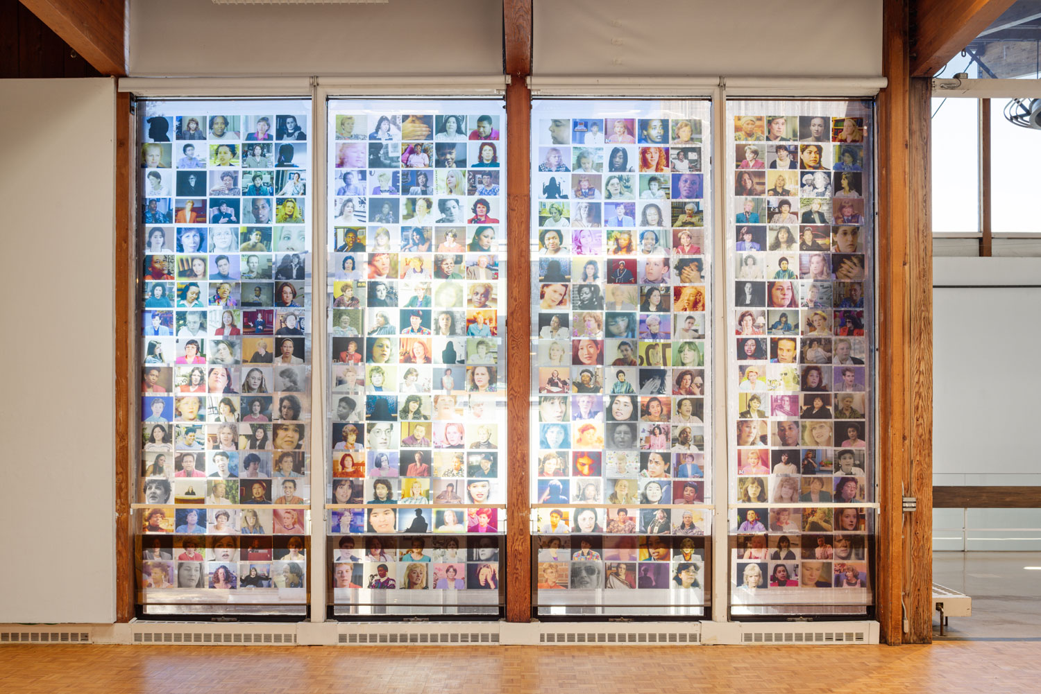 Complementing the video content are framed collages of photos and ephemera from Bako’s archive paired with short texts from interviews conducted by the artist. These intimate works offer a singular narrative of one woman’s life in the movement. Extending the exhibition into the campus landscape, a photograph from Bako’s archive appears as a banner on the exterior of the Helen Frankenthaler Visual and Performing Arts Center.